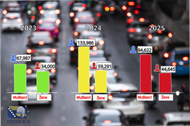 | Tako je u 2023. godini izdano i zamijenjeno 67.987 vozačkih dozvola za muškarce i 34.000 za žene, što ukazuje na značajno veći udio muškaraca. U 2024. godini dolazi do izraženog rasta kod obje kategorije pa broj izdanih i zamijenjenih vozačkih dozvola dostiže 133.986 za muškarce i 59.291 za žene. | |